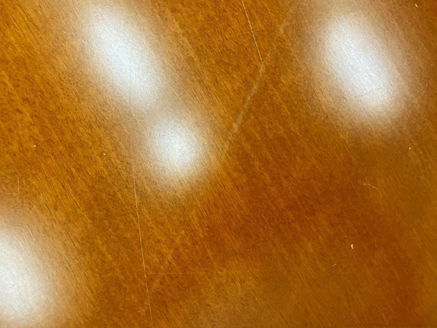 - あり黄ばみ・変色が広い範囲にうっすらある、または濃い黄ばみ・変色が一部ある。(例、天板、幕板、棚板、サイド部分、脚部等にある。)