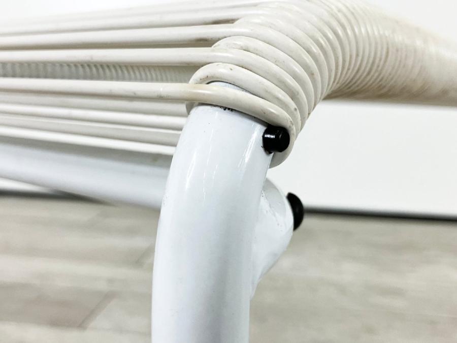すっきりと美しいフォルムは勿論、実用的なスタッキング機能もポイントです。 フレームに巻き付けられたPVCコードは復元力があり適度な弾力を持ちます。 見た目からは想像できない快適な座り心地を持つ一脚となっております。