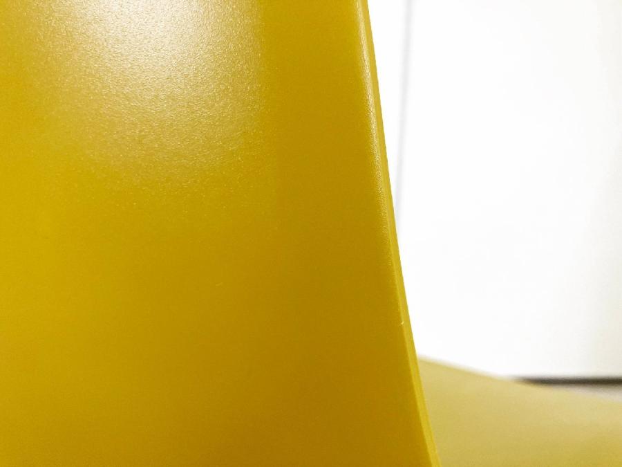 - かなり強い濃い黄ばみ・変色が商品全体にある。(例、座面・背もたれ、脚部等にある。)