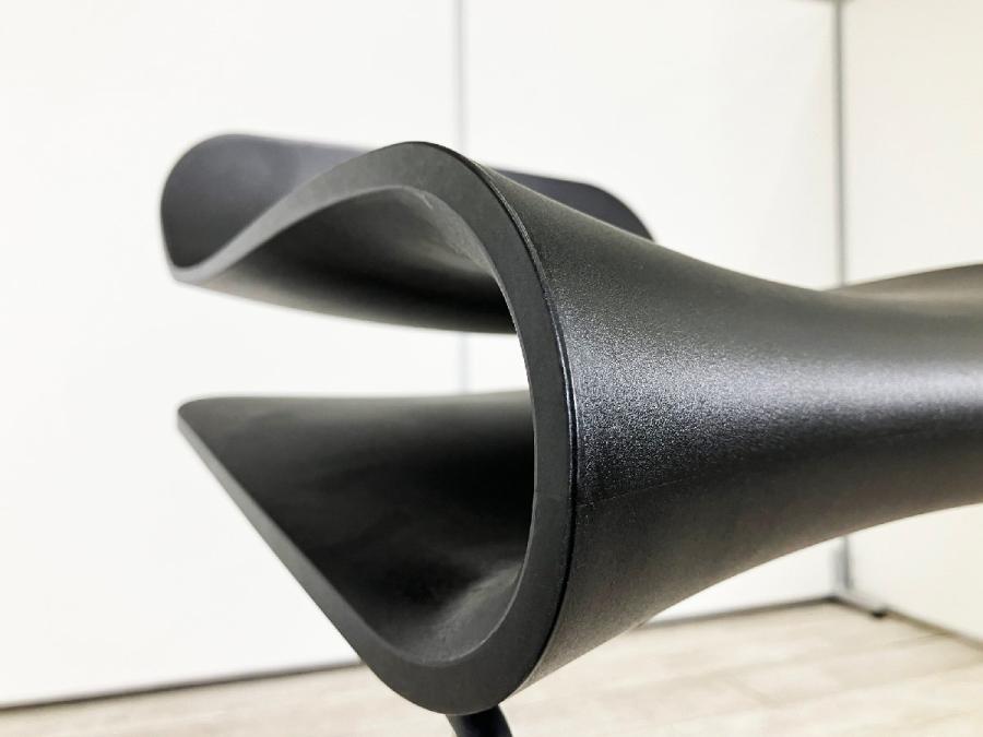 折りたたんだような曲線が美しいカウンタースツールです。後ろの隙間部分には雑誌などを置いてもオシャレかと思います。電気分野で絶縁体などに使われる、特殊なプラスチックを使用。シンプルで洗練されたデザインで、しなりや熱に強いしっかりとした作りになっています。