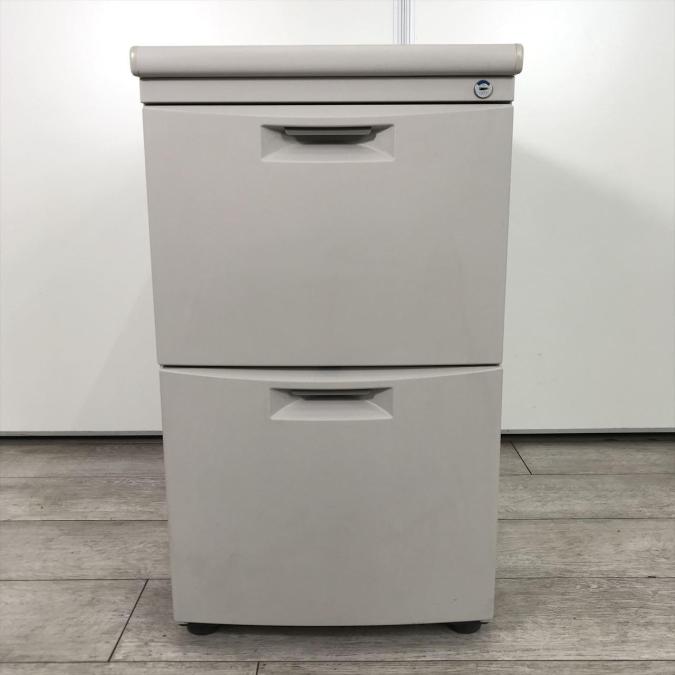 イトーキ CZシリーズ 2段脇机 鍵付き シリンダー錠 グレー デスク横に置いて作業スペースの拡張を ※樹脂部分に日焼け若干あり
