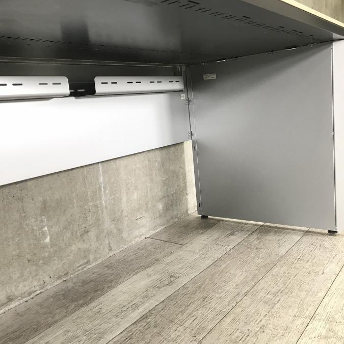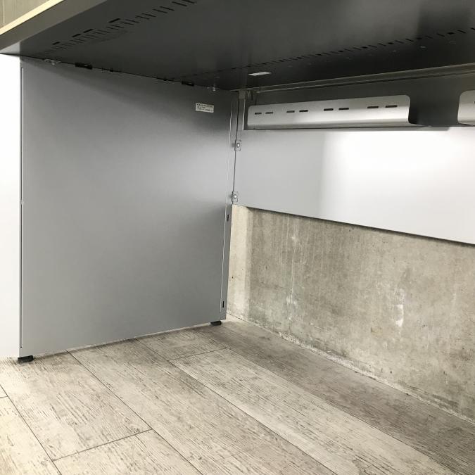 デスク後方をすっきりと見せる幕板を標準装備。