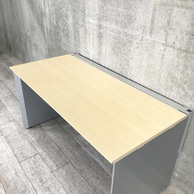 【定価約12万円!トレンドのナチュラル天板とおしゃれなシルバー脚!】■オカムラ(okamura)製 ワークヴィスタシリーズ 平机(W1400×D700×H700) ■木目ナチュラル ■引き出しなし ■パネル脚- つくば店