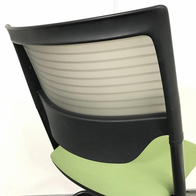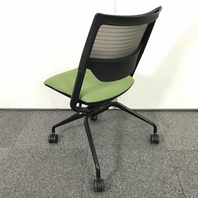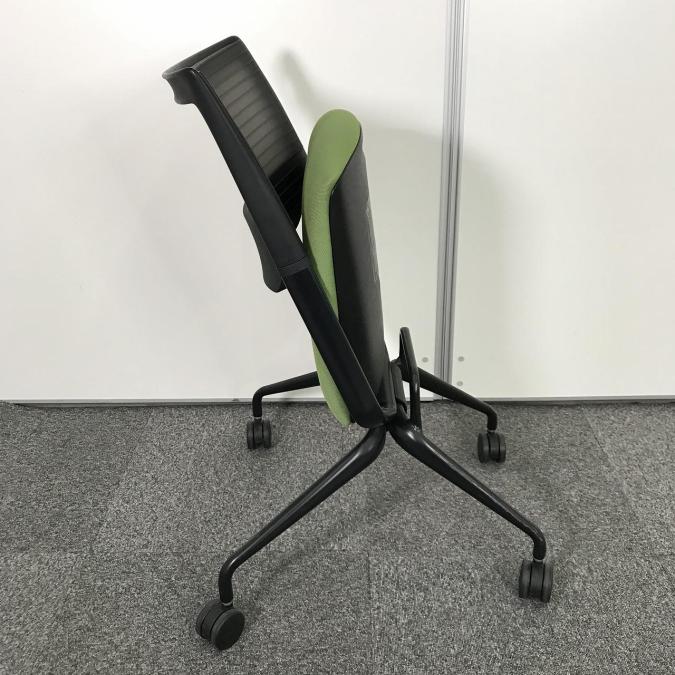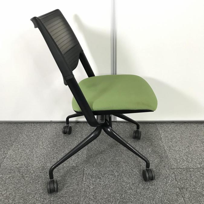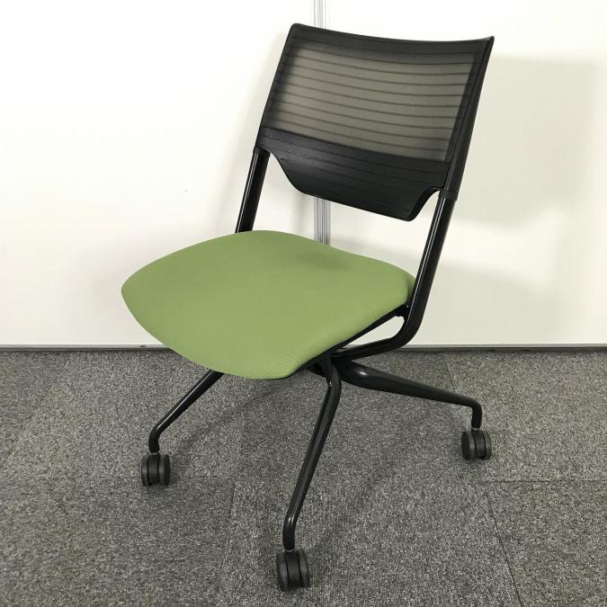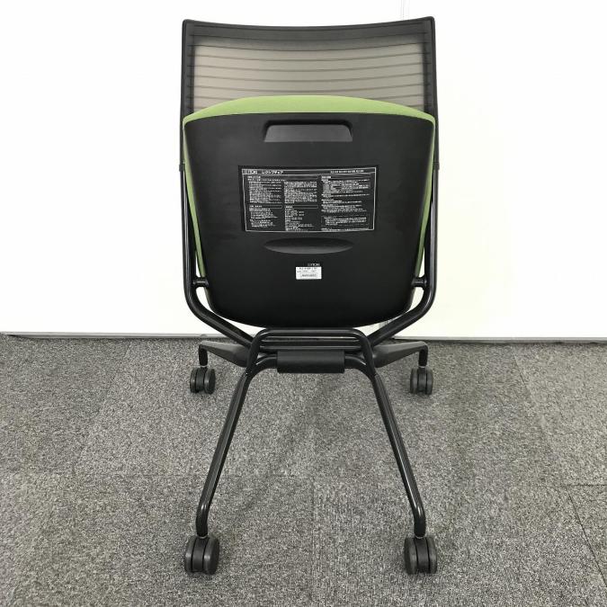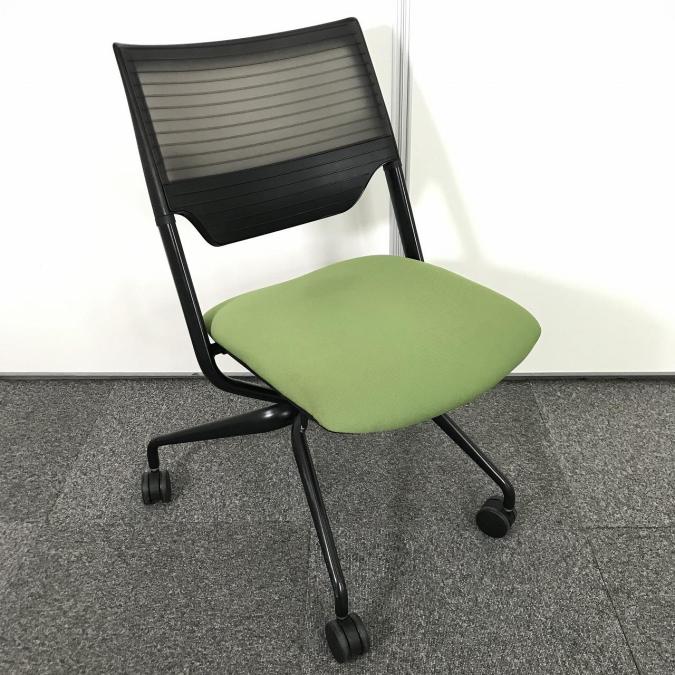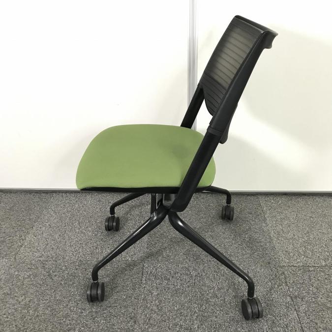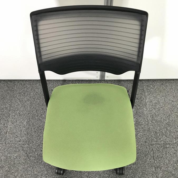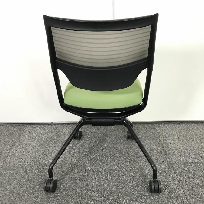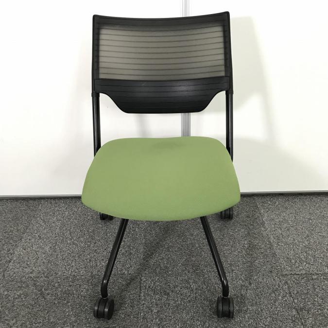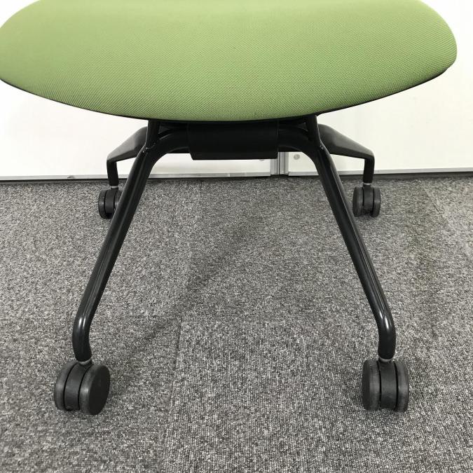 【使わない時は重ねて収納可能!ネスティングで1番人気!座面ふっくら】■イトーキ(ITOKI)製 レクシブシリーズ ネスティングチェア ■座面グリーン×背面・脚ブラック ■キャスター付- つくば店