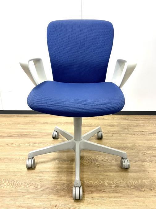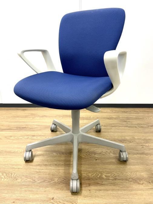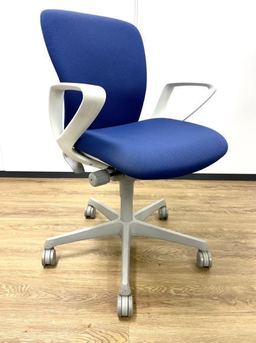 オカムラ製スラートチェア!! ローバック固定肘付き!ブルーの座面!長時間座っても疲れにくい!!- 在庫数