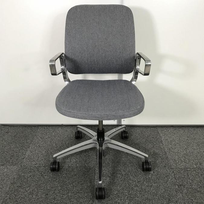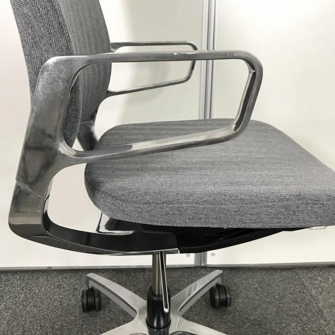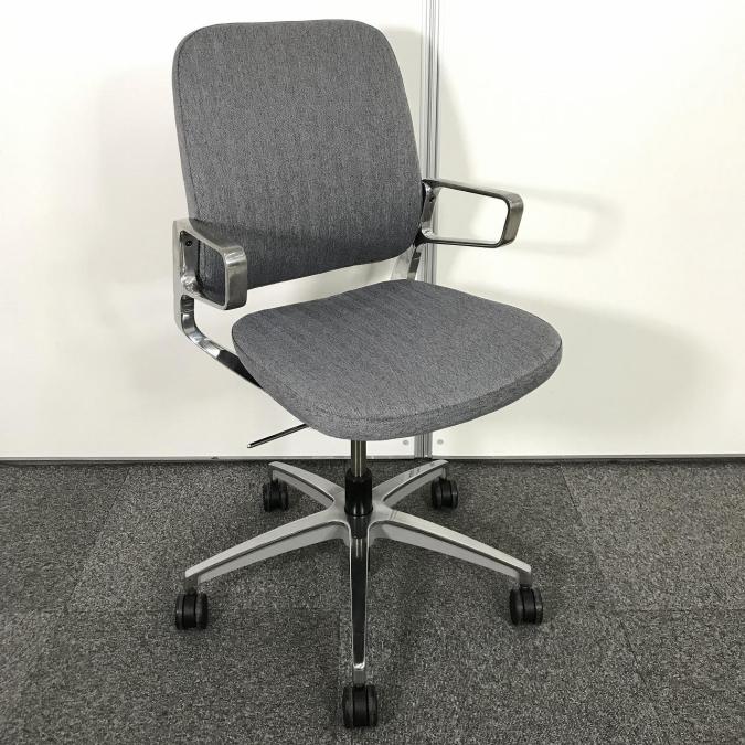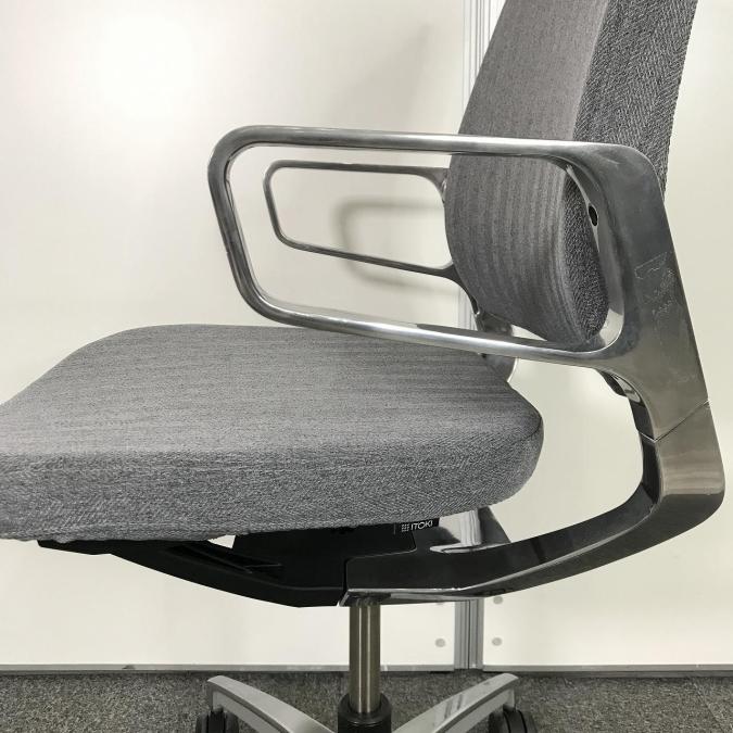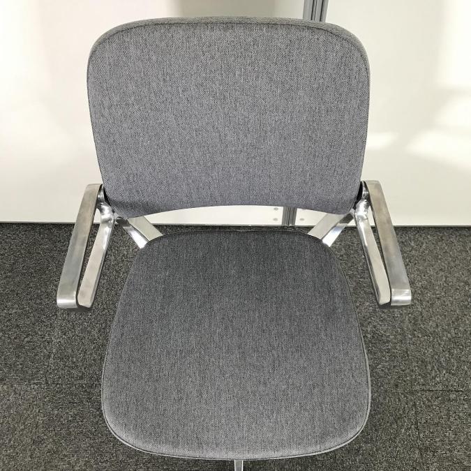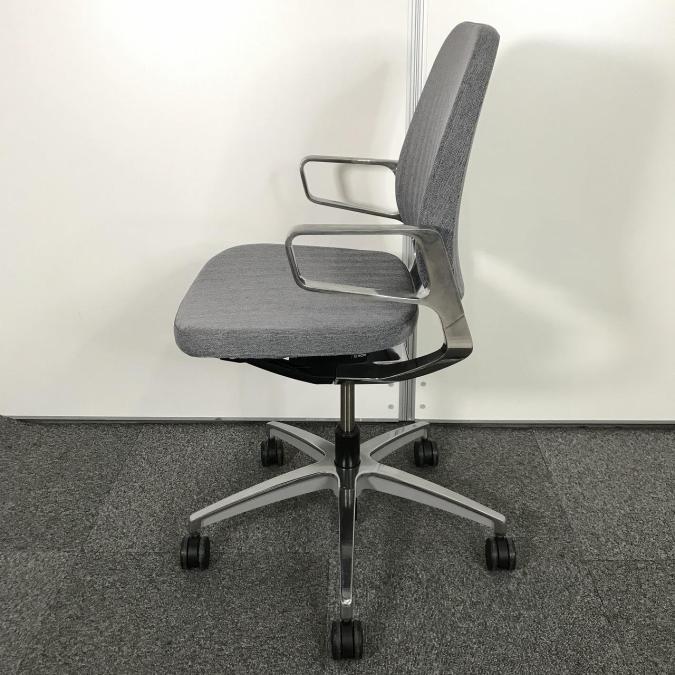 【様々な空間にフィットするスマートなデザイン!デスクワークにもミーティングにも!】■イトーキ(ITOKI)製 レヴィチェア ミーティングチェア ■グレー×肘・脚シルバー ■サークル肘- 名古屋本店