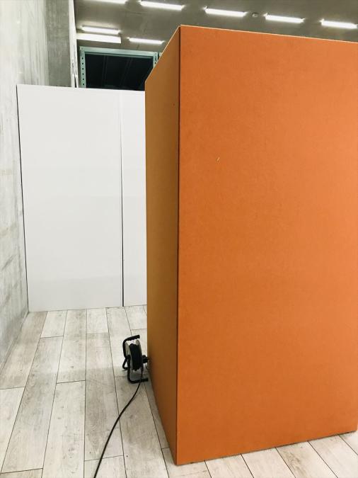 【在庫入替セール】オカムラ ソローワークブース drape(ドレープ) テトラ 天板右用 パネル:フェルト(オレンジレッド×ライトグレー) 高い注目度をほこるブース 【ABW】【吸音効果】- 名古屋千種店