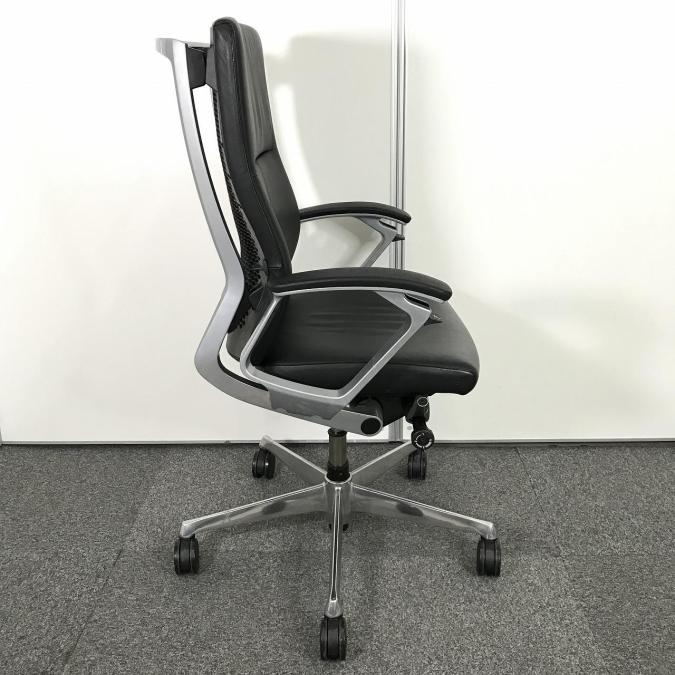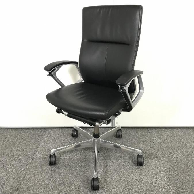 【滑らかで高級感あふれる座り心地が大人気!!】■オカムラ(okamura)製 デュークチェア(DUKE) ハイバック肘付き ■レザー張地 ■固定肘 ■ブラック【弊社使用欄:A01037767】【KN】