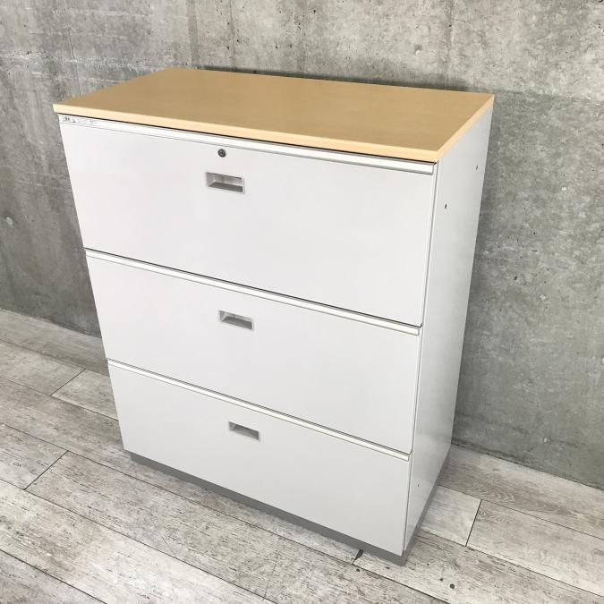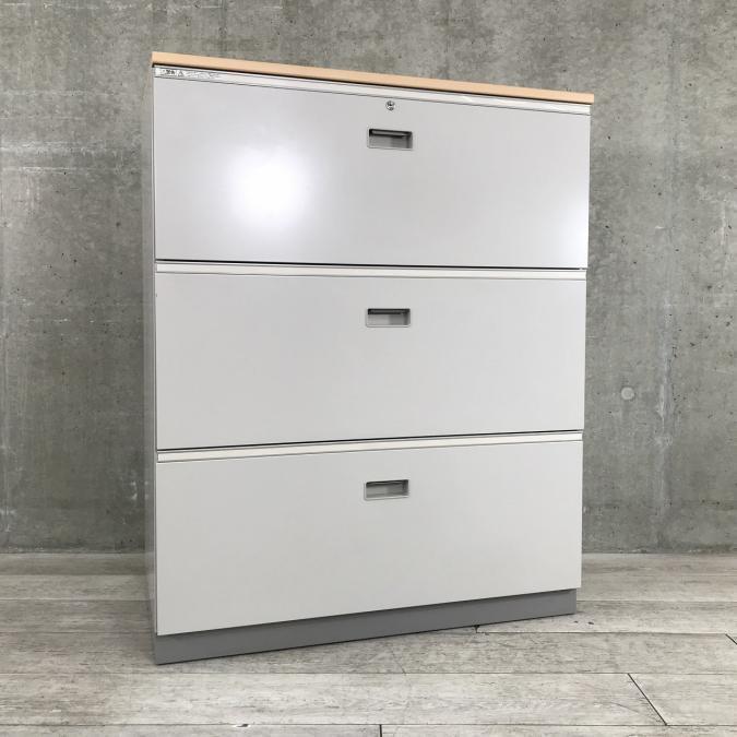 【4台限定在庫入替セール品】イトーキ製の定番書庫!人気の引き出し(ラテラル)タイプになります! イトーキ シンライン ホワイトグレー 3段ラテラル 天板付き