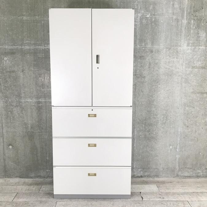 【大容量でスッキリ整理!観音開き+3段ラテラル書庫セットが入荷!】■イトーキ (ITOKI)製 シンライン ハイキャビネット (両開き+3段ラテラル) ■グレー ■シリンダー鍵- 名古屋本店