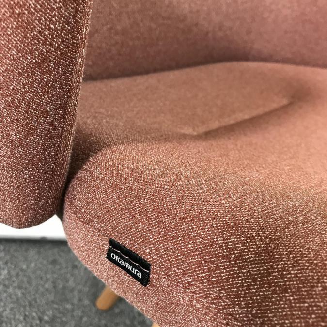 オカムラ ライブスワークチェア ローバック 木脚 カラー:ツイル(単色)テラコッタ やわらかく、からだを包み込むフィルム。カジュアル・機能的- 名古屋千種店