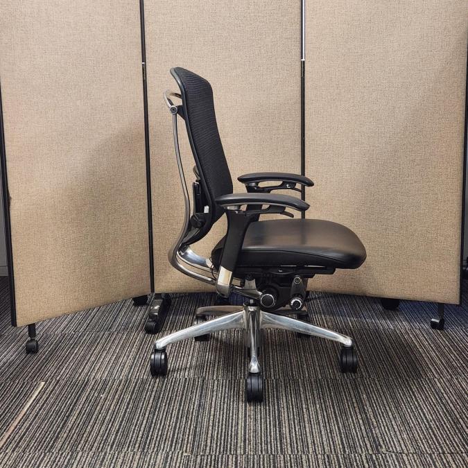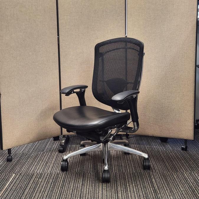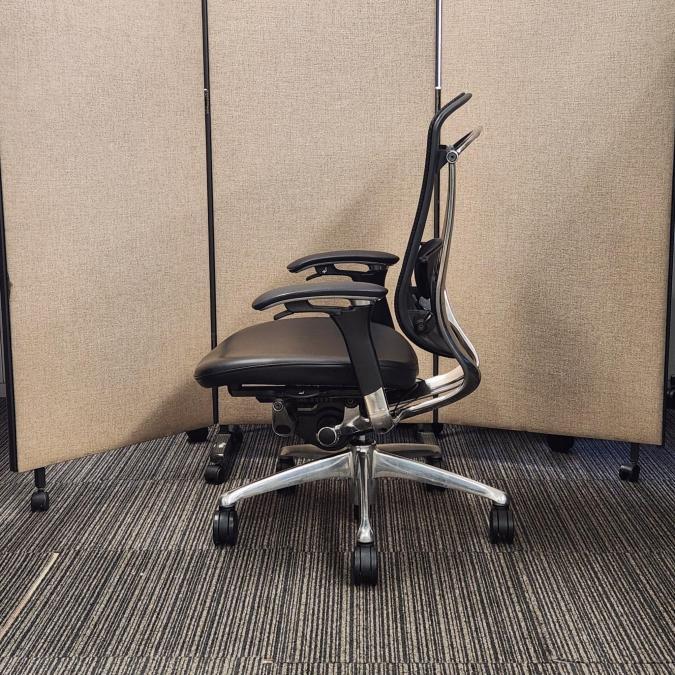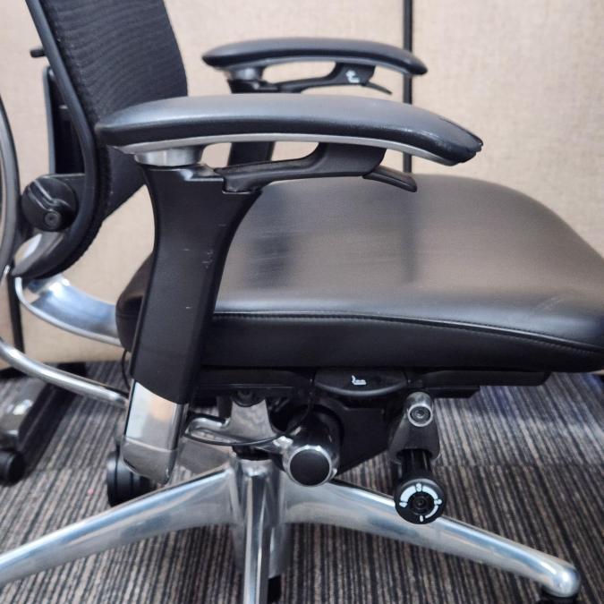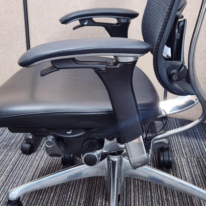 【福岡西店撮影】【訳アリ商品】【1脚限定!】最高峰!ハイグレードメッシュチェア!高級感のある座面レザー仕様が入荷【役員用/ご自宅用にも】 ■オカムラ(okamura) コンテッサ(Contessa) ■ハイバック 背面メッシュ 座面レザー 可動肘 ブラック【福岡オフィス家具】【福岡中古家具】【中古事務什器】【中古チェア】【中古椅子】- 福岡西店