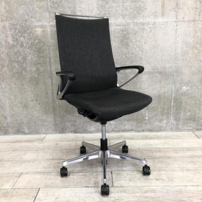 【在庫入替セール品!】スタイリッシュなデザインと確かな座り心地!会議室やモダンなオフィスの執務用としてもおすすめ! インテリア性の高い人気チェア! オカムラ/モード(mode)/ダークグレー デザインアーム フレーム(樹脂) ボディカラー(ブラック) クロス(ヘリンボーン)