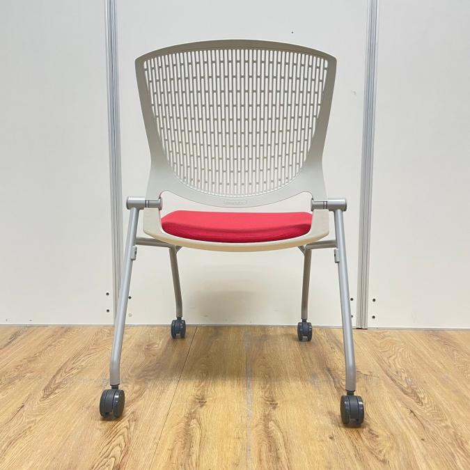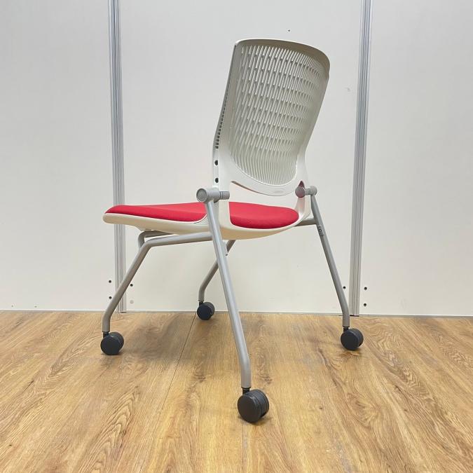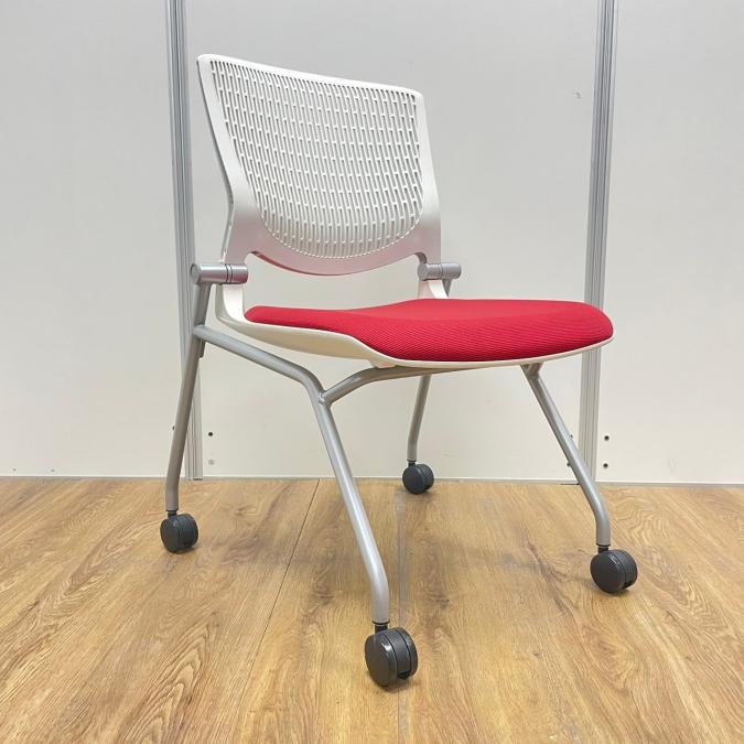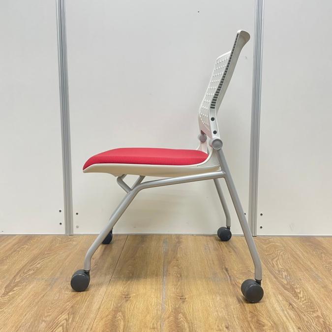 【在庫入替セール】【8脚限定】【しなやかにワーカーを受け止める洗練されたデザイン!使わない時は平行に重ねて収納可能!】■オカムラ(okamura)製 グラータ (Grata) 肘無し ミーティングチェア ネスティングチェア ■背パッド付き ■キャスター付 ■レッド【K10】