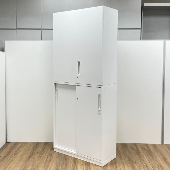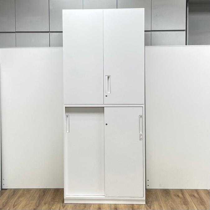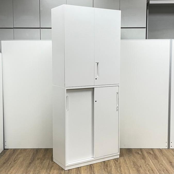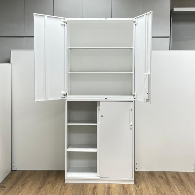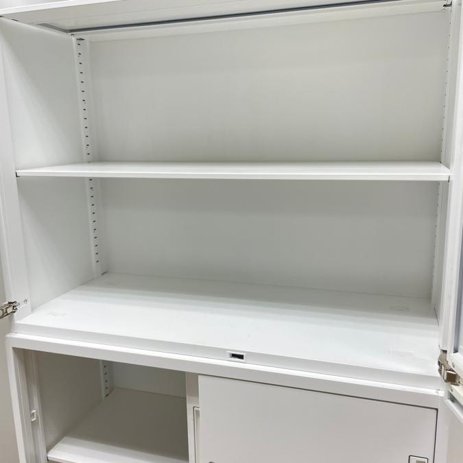 コクヨ製 エディアシリーズ ホワイトカラー 豊富な収納スペース 注意※奥行40タイプ 上両開き+下引き違い 上下書庫セット!!- 京都東寺店