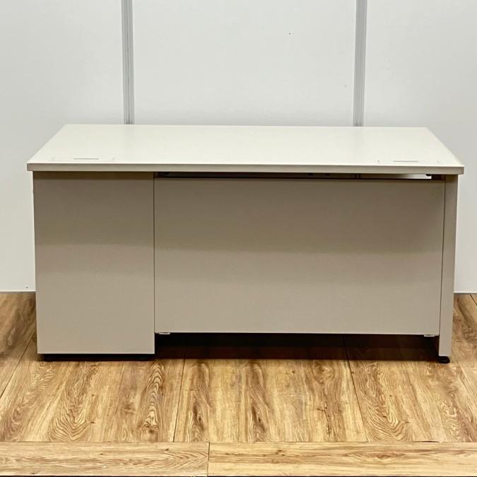 明るいアイボリーよりのニューグレー色で非常に人気のデスクになります。