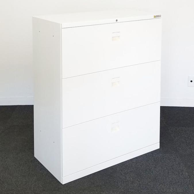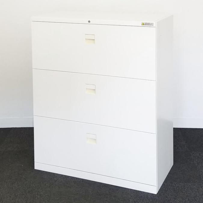 【オフィス書類をスッキリ整理!】■オカムラ製 3段ラテラル書庫 ホワイト天板付き ■ファイル収納にオススメ!引出し型キャビネット!【在庫入替セール品】