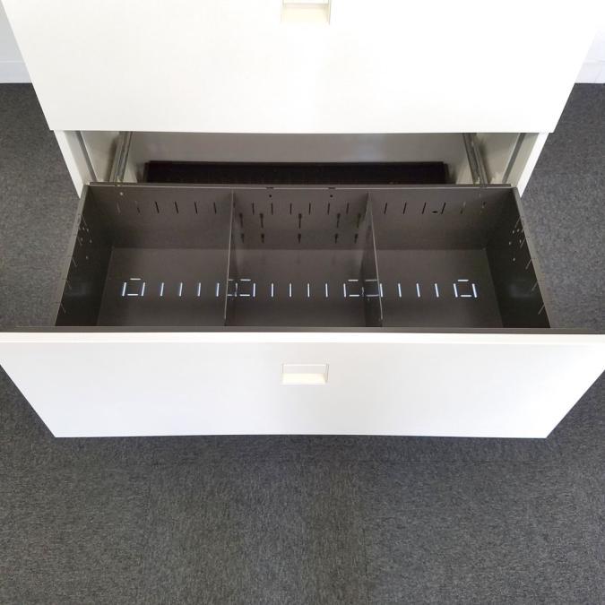 【オフィス書類をスッキリ整理!高品質で使いやすい3段引き出しキャビネット!】■オカムラ(okamura)製 SAデュオライン 3段ラテラル書庫 ローキャビネット ■色:ホワイト ■シリンダー錠 ※仕切り板無し