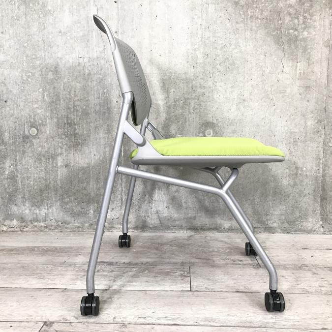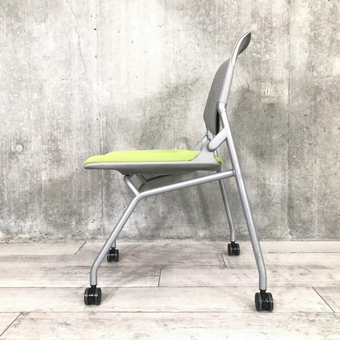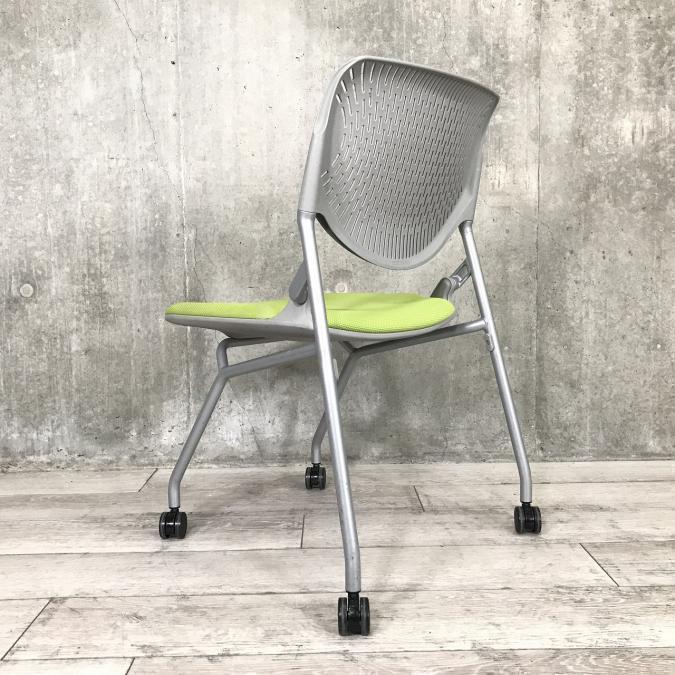 【関東倉庫在庫品】【フレキシブルに使える!便利なネスティングチェア!】■オカムラ(okamura) ルナチェア(RUNA) ネスティングチェア ミーティングチェア 肘無し ■キャスター付 ■背面樹脂メッシュ(ヌードタイプ) ■グリーン 【弊社使用欄:A01014732】【ECBMC】