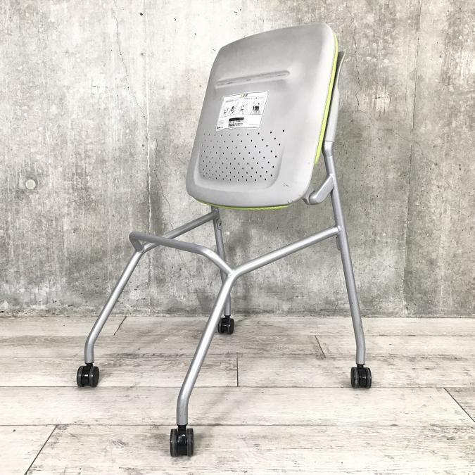 【関東倉庫在庫品】【シンプルデザインで使いやすいチェア!】■オカムラ製 ルナ ネスティングチェア■グレー 座面:ライトグリーン【弊社使用欄:A00991579】【ECBMC】【在庫入替セール品につき限定特価!】