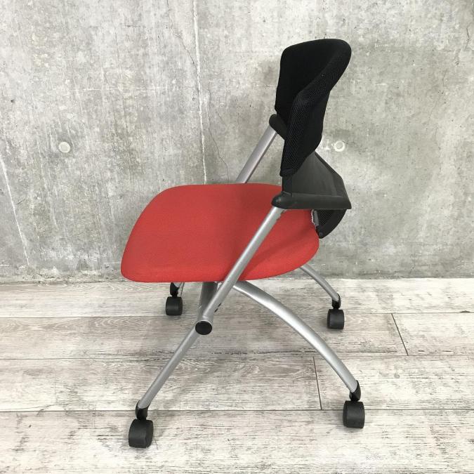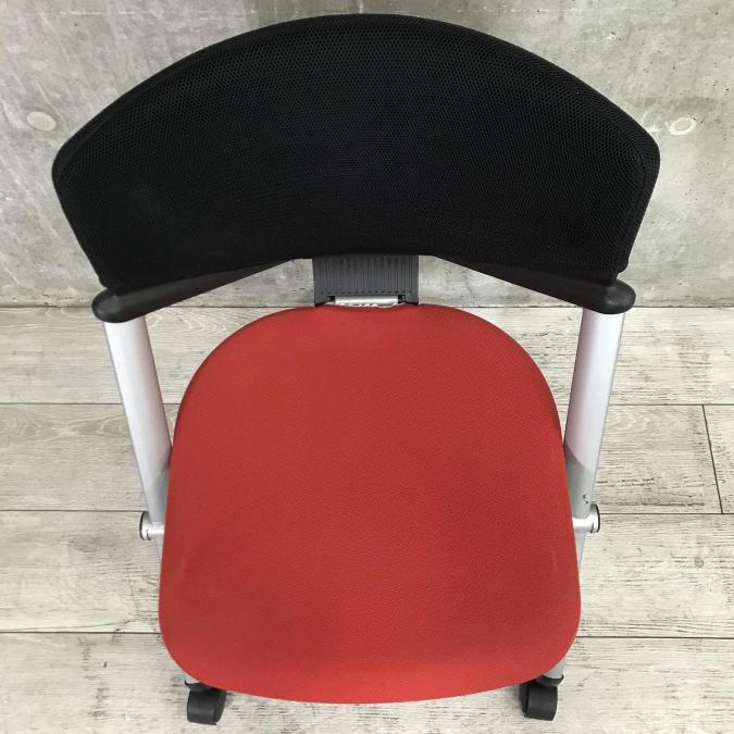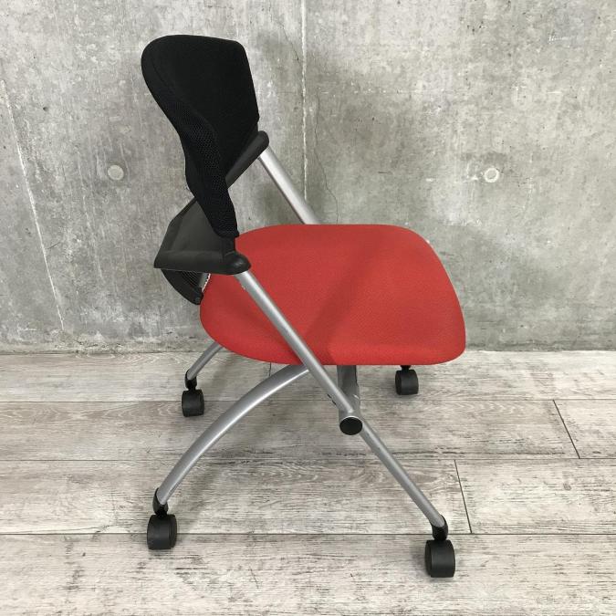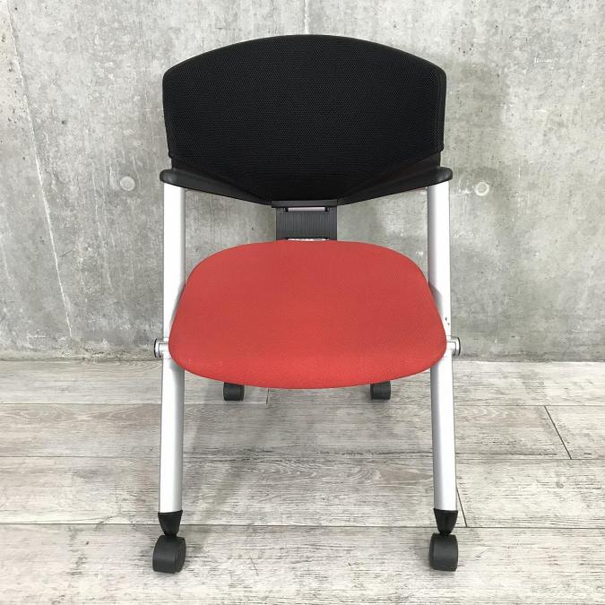 【定価約4万円】【グッドデザイン賞受賞品!鮮やかなレッドでオフィスが映えます!】■コクヨ(KOKUYO)製 コルサチェア スタッキングチェア ■座面レッド×背面ブラック ■キャスター付- 仙台店