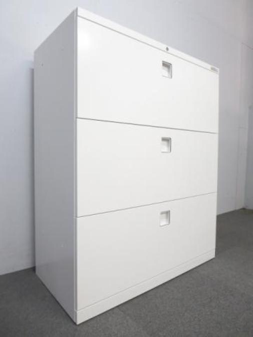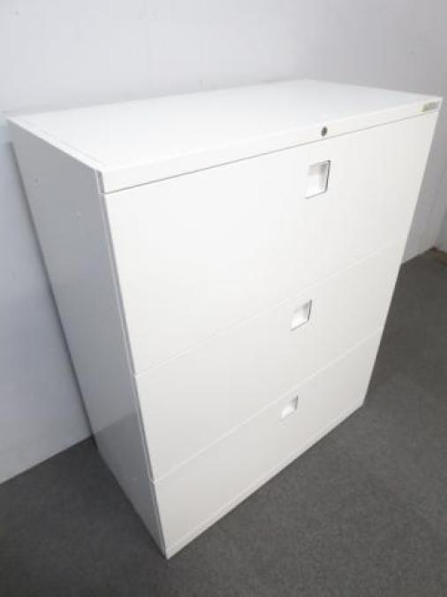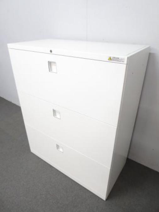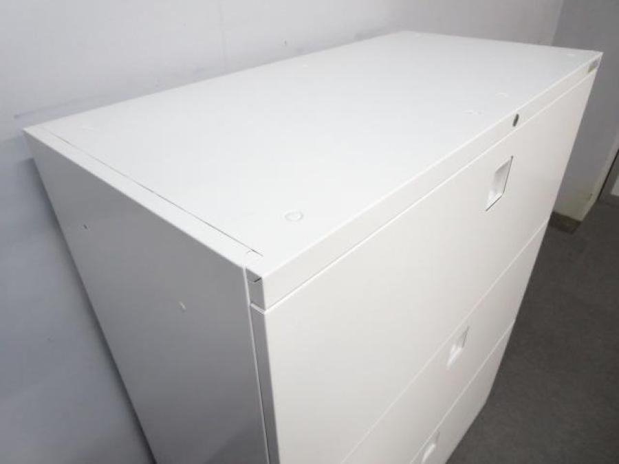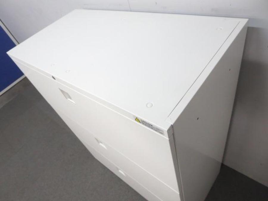 【大容量の三段キャビネット!天板付きなのでカウンターとしても使える!】■オカムラ(okamura)製 レクトライン(Rectline)シリーズ 3段ラテラル書庫 ローキャビネット H1120㎜ ■天板付き ■シリンダー錠 ■ホワイト