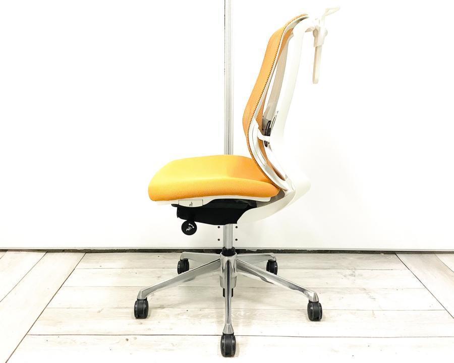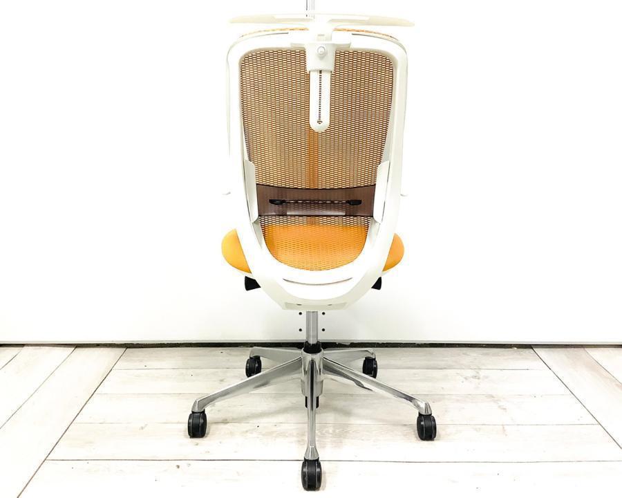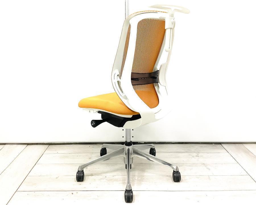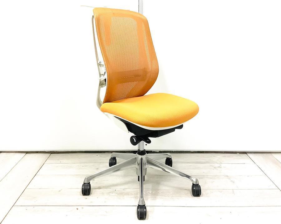 【在庫入替セール品!】【大人気チェア入荷!前傾機能とクッション性・フィット性から大好評な国産チェア!】■オカムラ(okamura)製 シルフィーメッシュ 肘無ハイバックチェア ■オレンジ×ホワイトフレーム ■ハンガー付 ■ランバーサポート付【弊社使用欄:A00948526】サーキュラーバリューCO2削減量の算出について