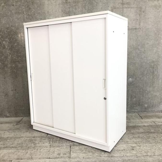 【イトーキ製の開閉スペースを確保した人気のキャビネット!】■3枚引き違いキャビネット ■イトーキ ■シンライン ■幅800mm×奥行き450mm×高さ1100mm 鍵付き書庫 オフィスバスターズ東大阪店
