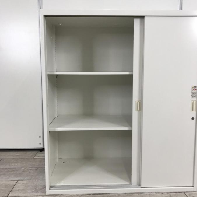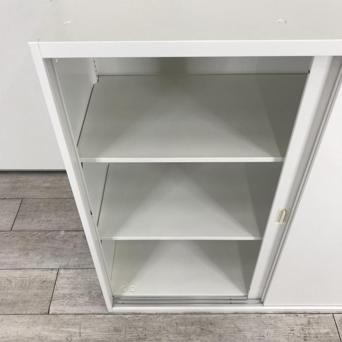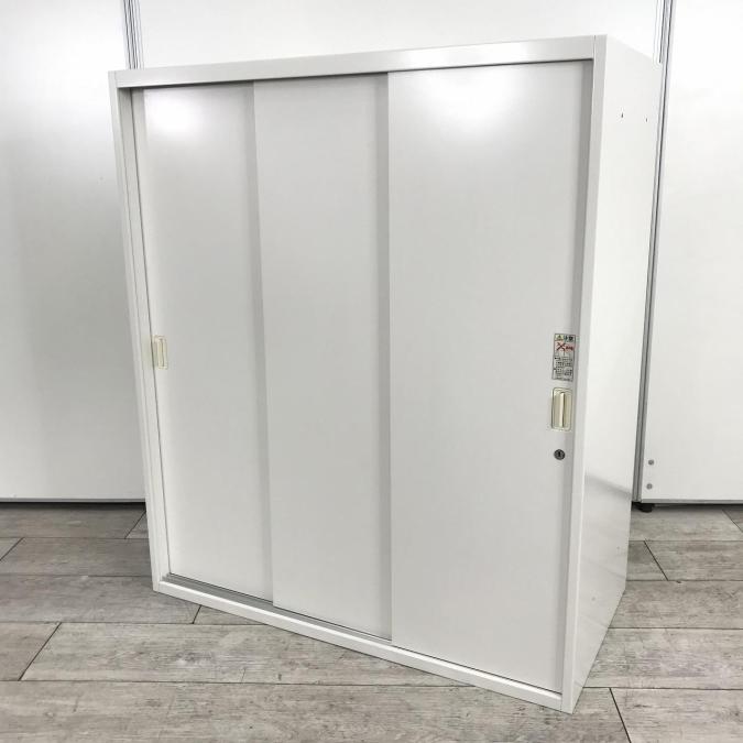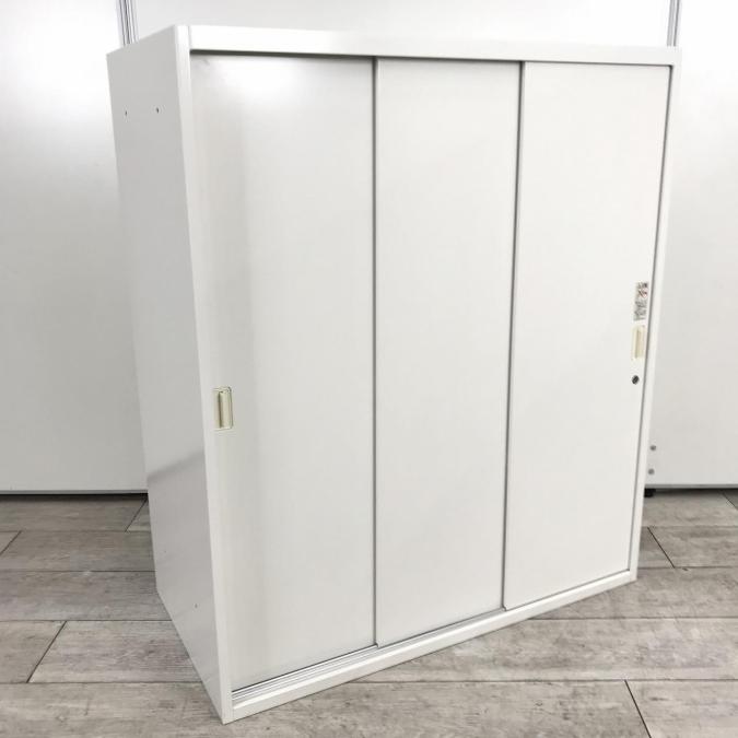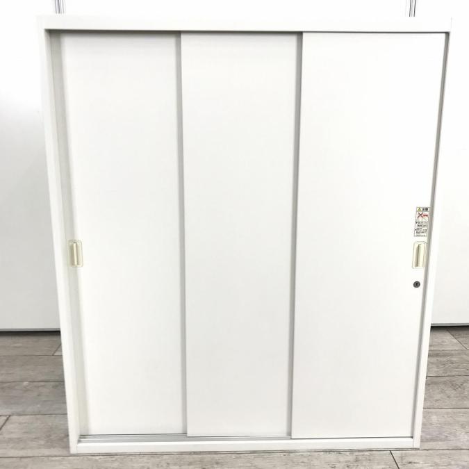 在庫入れ替えセール30%【3枚扉で使い勝手抜群!スペースの有効化が可能な引き戸キャビネット】■オカムラ レクトライン ローキャビネット 引き違い ■ホワイト シリンダー錠- 池袋店