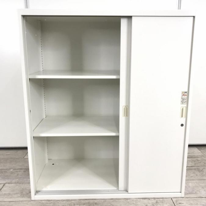 2枚引き戸書庫 オカムラ レクトライン 鍵付き シリンダー錠 ホワイト 天板無し スライド式の扉のため導線を邪魔しません