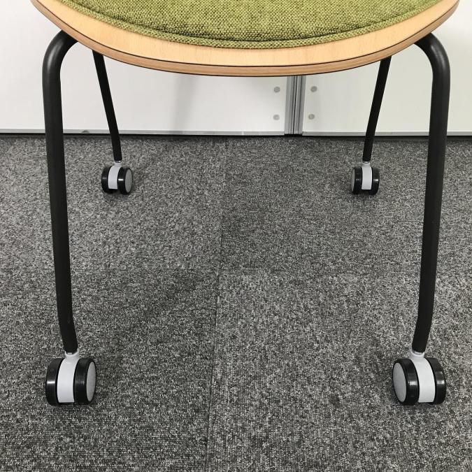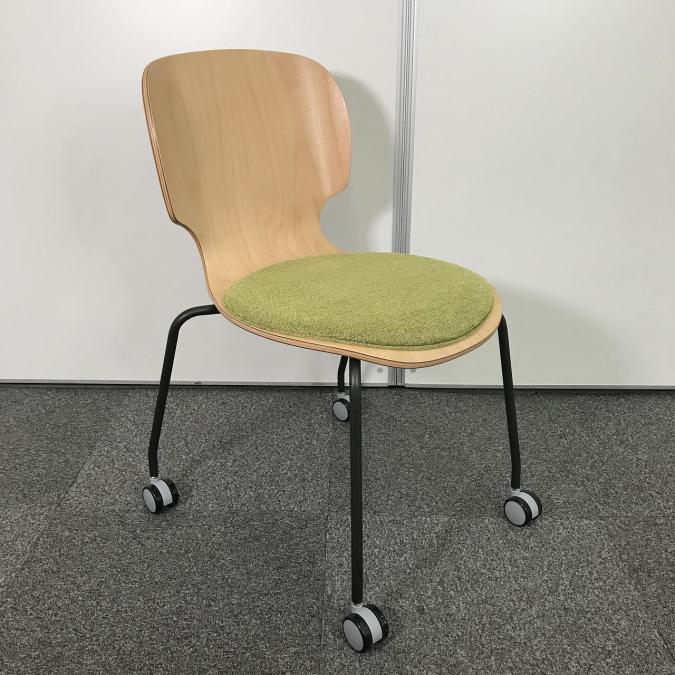 こちらは木製シェルにクッション付き・キャスター付きで、