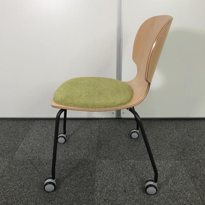 【カフェ調オフィス・リフレッシュスペースにおすすめ!重ねて収納可能!】■ クレス製 (CRES) HABES (ハベス) ACタイプ スタッキングチェア ■キャスターつき 木製シェル クッション付き ■グリーン 弊社OBIS A00964614- 日本橋店