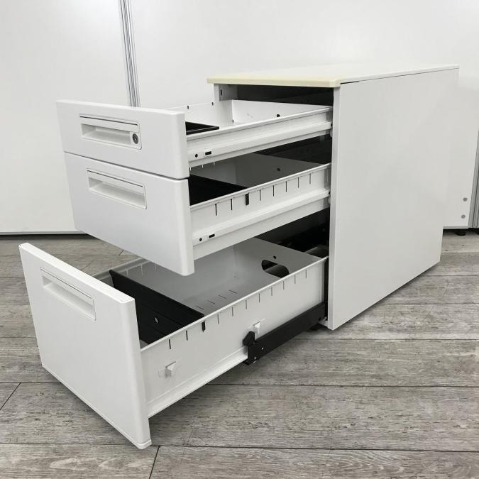 - 一部不具合ありその脇机・ワゴンの本来の効用を果たすための機能以外の一部が使用不可な状態。(例、引出が開閉しづらい、 キャスターロック機能使用不可、ラッチ不良 等がある。)