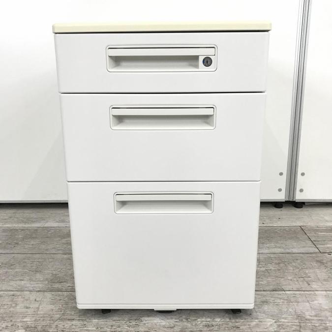 【スタンダードなデザインで使いやすい!キャスター付きホワイトワゴン!】■ナイキ製 3段ワゴン XEシリーズ ■ホワイト ■高さ611㎜【フリアドデスクや平机の収納力アップに!】- 東大阪店