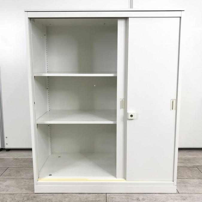 2枚引き戸書庫 オカムラ レクトライン 鍵付き シリンダー錠 ホワイト 天板無し スライド式の扉のため導線を邪魔しません