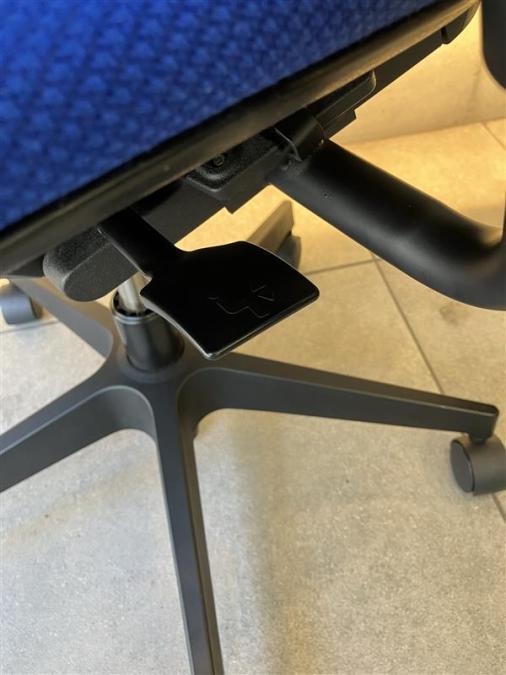 例えば、座面は、イトーキ独自の"ベンディングシート"という機構により、クッション、インターシェル、空洞という三層構造になっています。 この真ん中に挟まっているインナーシェルが、着座時の姿勢に合わせて体重を分散してくれるので、どんな姿勢でも体になじみ、疲労を軽減してくれます。 さらに、座面は前後に4センチほど奥行きを調整でき、前傾姿勢で座りたい、深く腰掛けたい、膝裏を圧迫されたくないなど、個人の好みに合った快適さにカスタマイズが可能となっています。