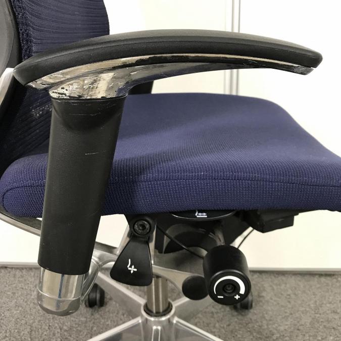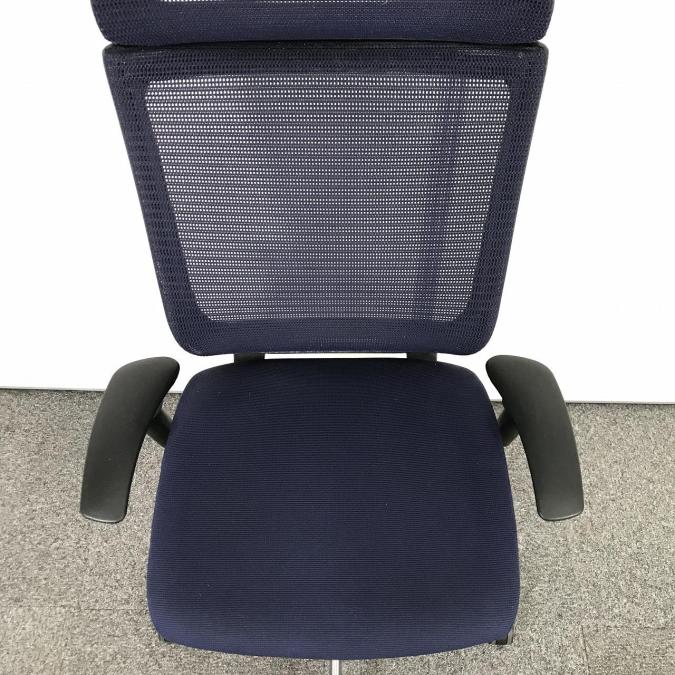 【オフィスの執務室、会議室におすすめ!】■オカムラ(okamura)製 バロン(Baron)チェア 肘付き ハイバック 背面メッシュ ■可動肘 ■ダークブルー × ホワイトシェル【硬めの座面が大人気!国産メッシュチェアの代表格!】【状態良好品!】