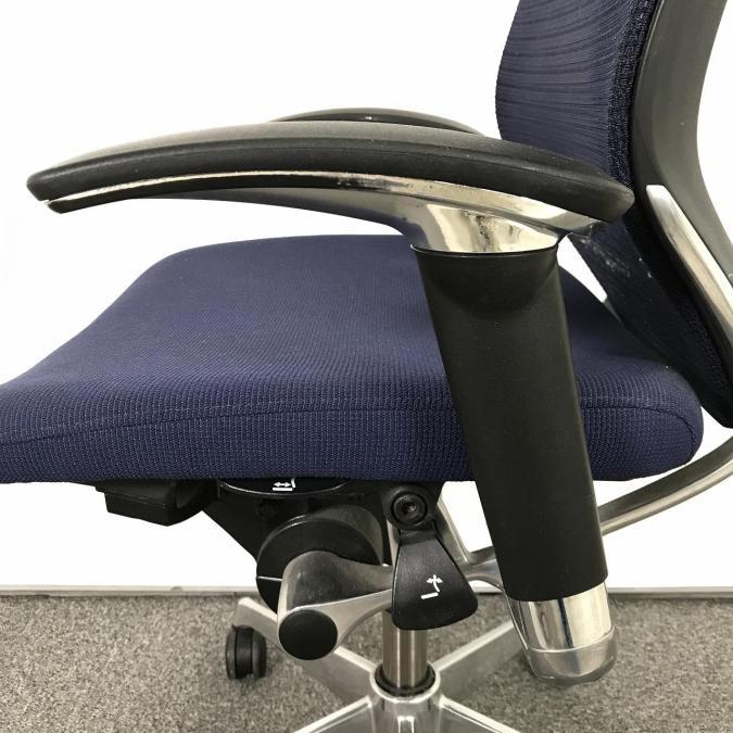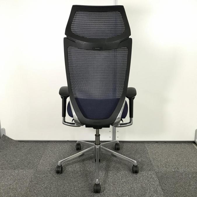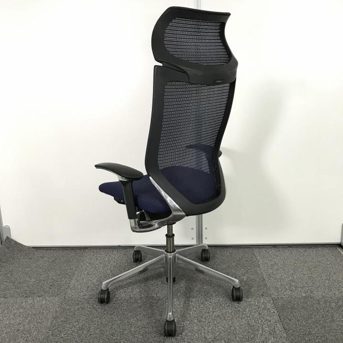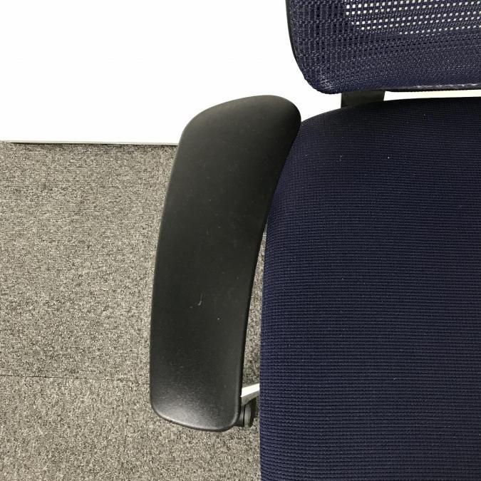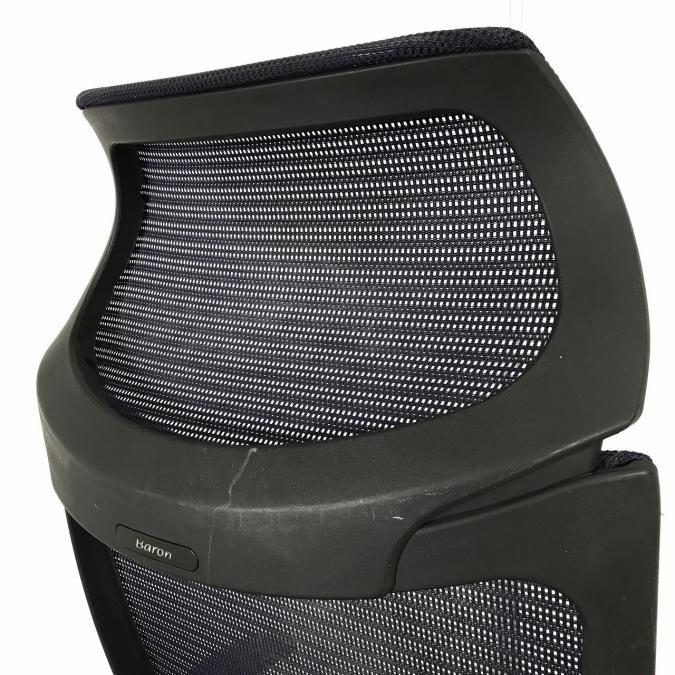 【オフィスの執務室、会議室におすすめ!】■オカムラ(okamura)製 バロン(Baron)チェア 肘付き ハイバック 背面メッシュ ■可動肘 ■ダークブルー × ホワイトシェル【硬めの座面が大人気!国産メッシュチェアの代表格!】【状態良好品!】