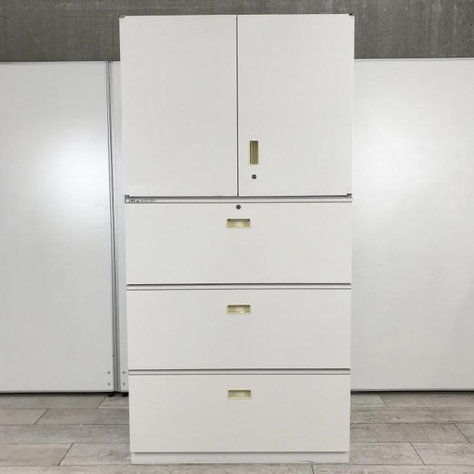 【大容量でスッキリ整理!観音開き+3段ラテラル書庫セットが入荷!】■イトーキ (ITOKI)製 シンライン(THUN LINE) ハイキャビネット (両開き+3段ラテラル) ■ホワイト ■シリンダー鍵
