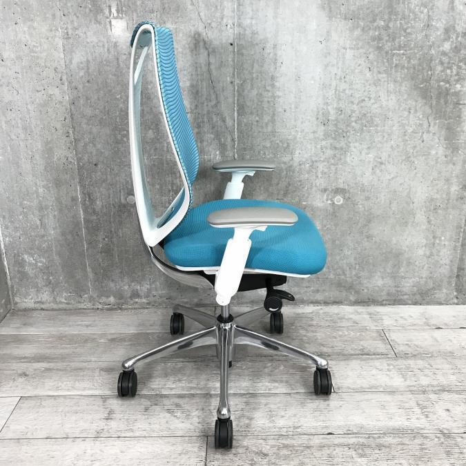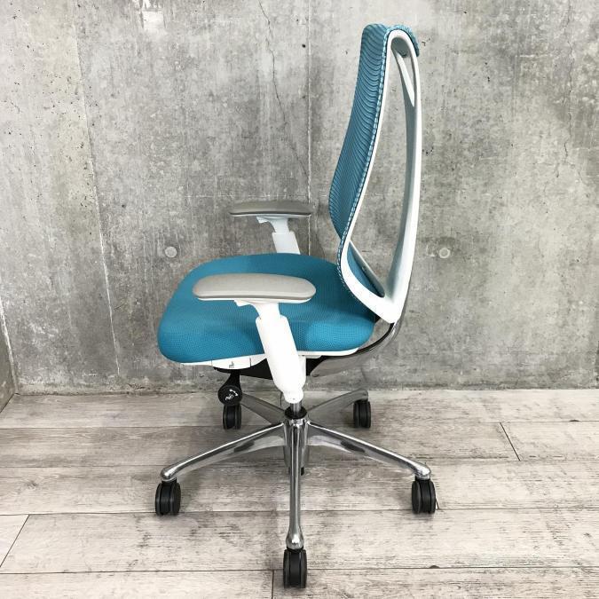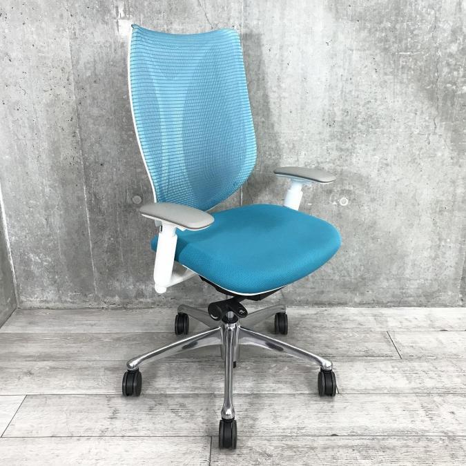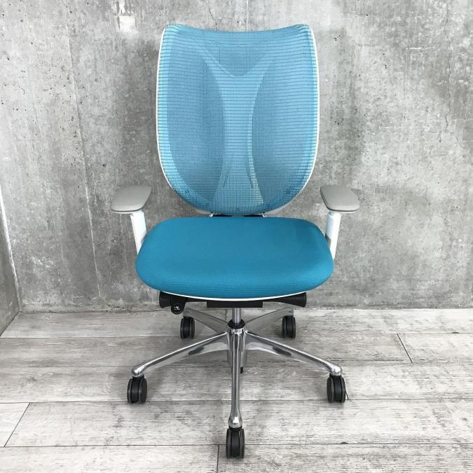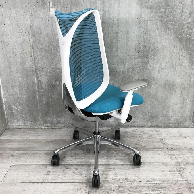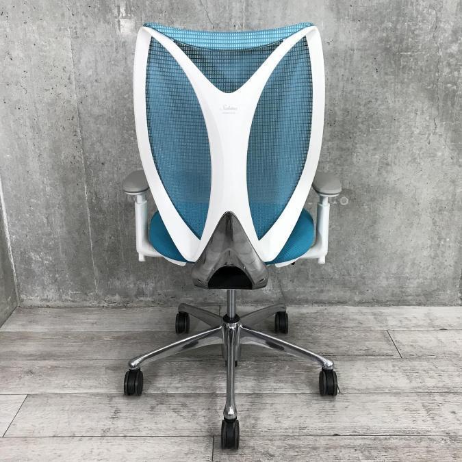 【前傾チルト付き】流れるような美しいフォルム!最高級メッシュチェア■オカムラ サブリナ (Sabrina) ハイバック 可動肘付き ■アクアブルー ■背もたれメッシュ【しなやかに、しっかりフィット】- なんば日本橋店