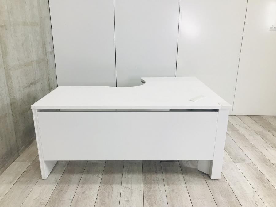 【L字デスク左タイプ!】【スタイリッシュなフラットデザイン!オフィスだけでなく、在宅ワークにもオススメ!】■イナバ製 デュエナシリーズ L字デスク(90度ワークテーブル) ■ホワイト ■L字脚 ■左(L)タイプ ■配線口Sタイプ ■幕板付 【ABW商材】【関東倉庫在庫品】【弊社使用欄:A00970913】- 全店共通商品