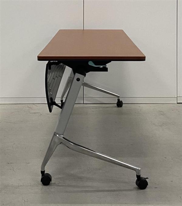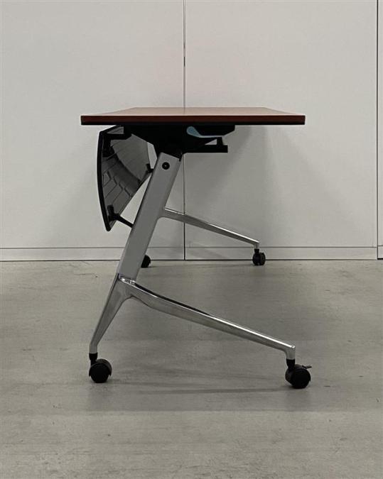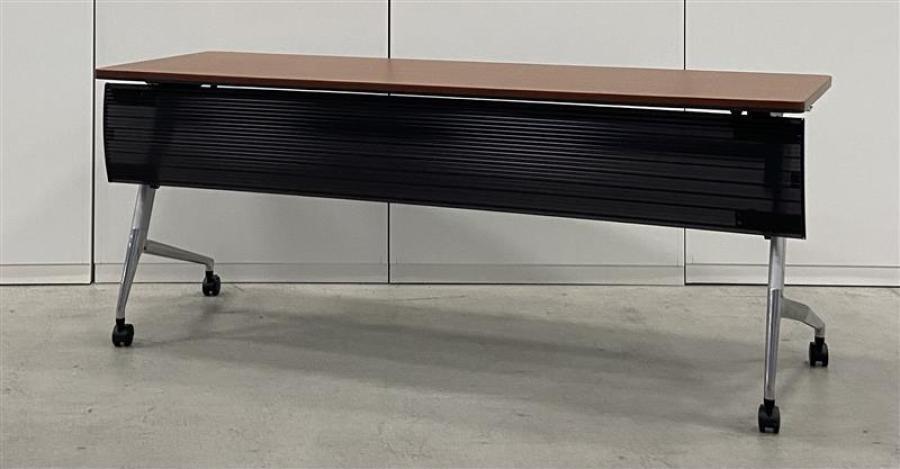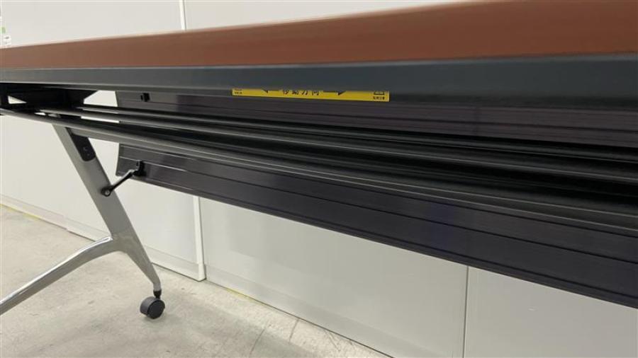 【シックなカラーリング!】使わない時には畳めて収納可能! 内田洋行/LEGARE キャスター付 W1800 D600 中古 収納 会議 セミナー ブラウン 木目- 東大阪店