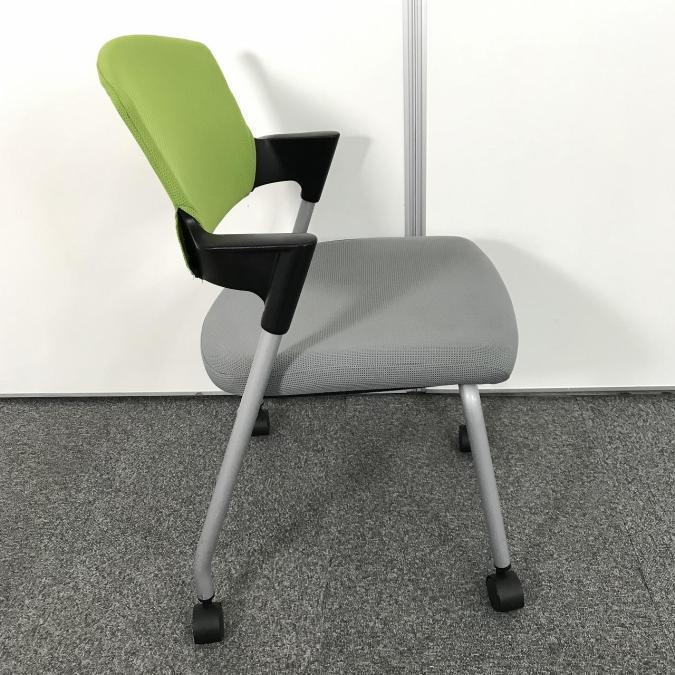 【しっかりクッションでお尻をサポート!】■コクヨ製 プロッティチェア 背:グリーン/座:グレー 肘付 キャスター付【KOKUYO Protty】- 川崎店