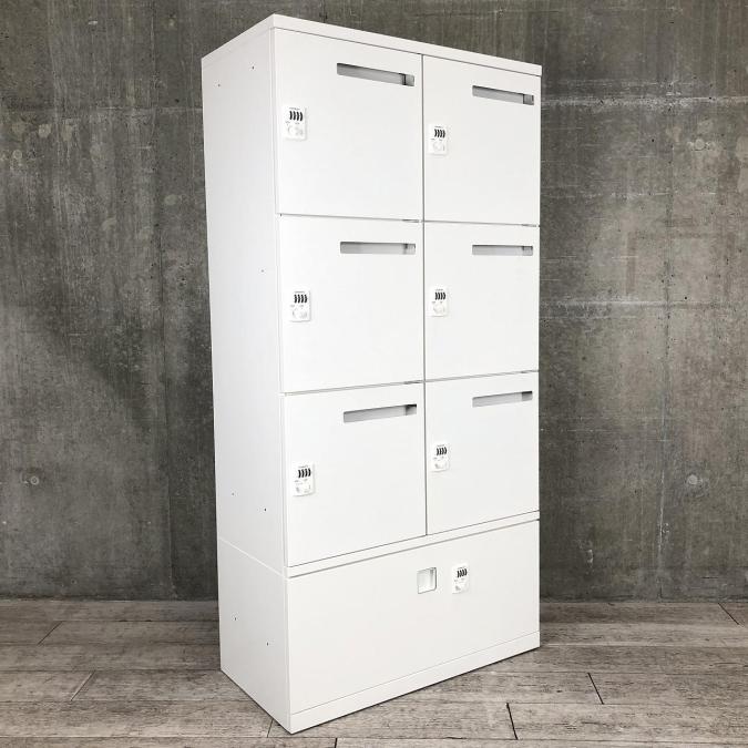6人用のダイヤル式のロッカーと1段引き出し書庫のセットです!