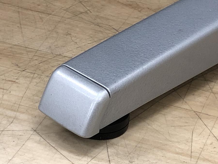 - 一部不具合あり天板歪み、アジャスター無し、キャスター使用不可ようなそのテーブルの本来の効用を果たすための機能以外の一部が使用不可な状態。(例、キャスターロッ ク機能使用不可、棚板無し等がある。)