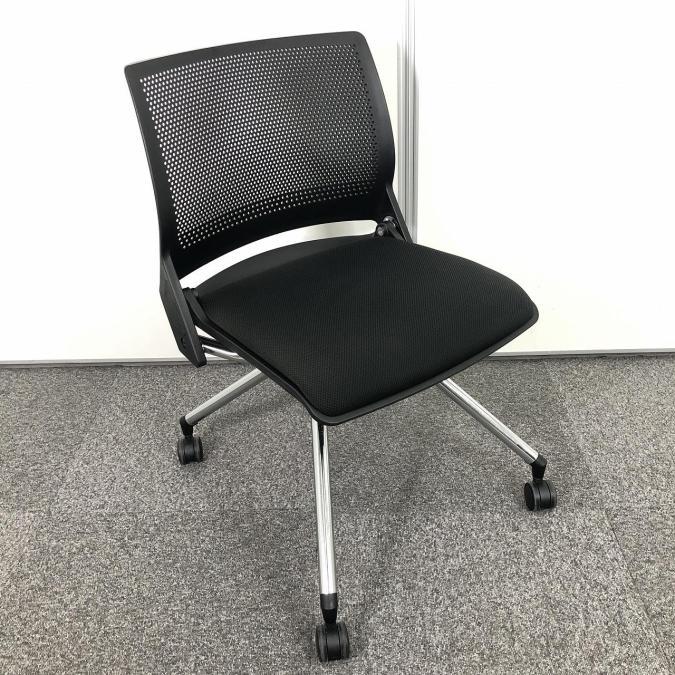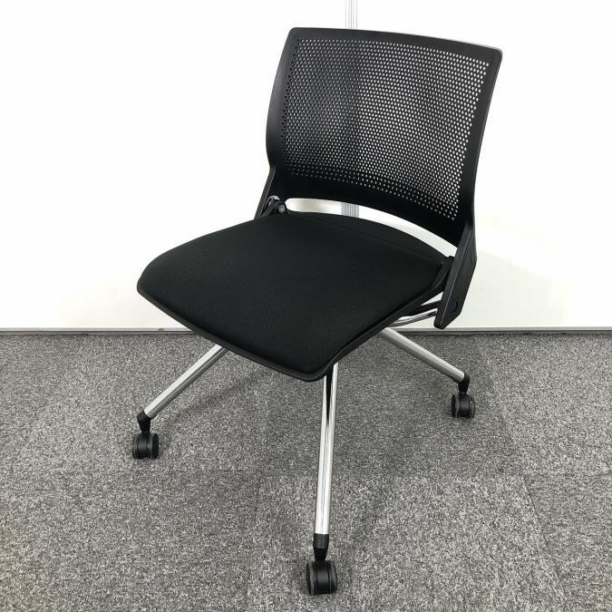 【折りたたんで省スペース!ネスティングチェア】■オカムラ(okamura)クリール ネスティングチェア ミーティングチェア ■肘無し ■ブラック 会議用チェア 折り畳みチェア在庫がある店舗一覧