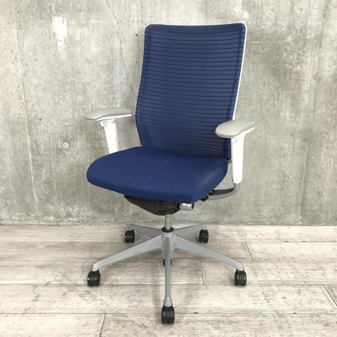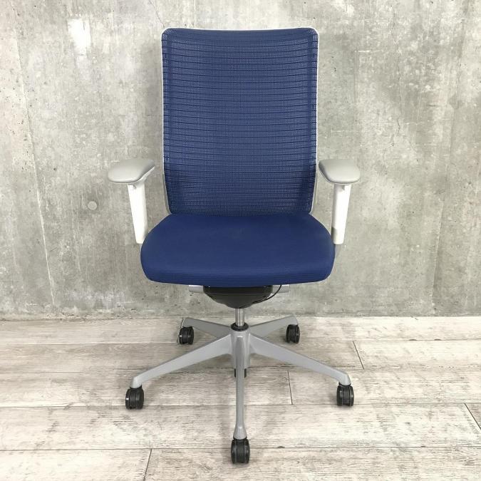 【在庫入替セール】【5脚入荷】【どんな空間にも調和するデザインと最上級の操作性!背面メッシュで通気性抜群!】■オカムラ(okamura)製 コーラル (Choral) 肘付ハイバック ■ミディアムブルー ■メッシュ背面 ■可動肘 ■ハンガー付【K】【T8】