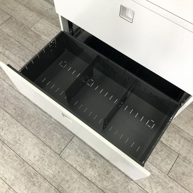 オフィスの必需品!書類をスッキリ整理できる容量の3段キャビネット取っ手がどの方向からでも開くマルチハンドル! ■オカムラ/レクトライン(Rectline)/ホワイト