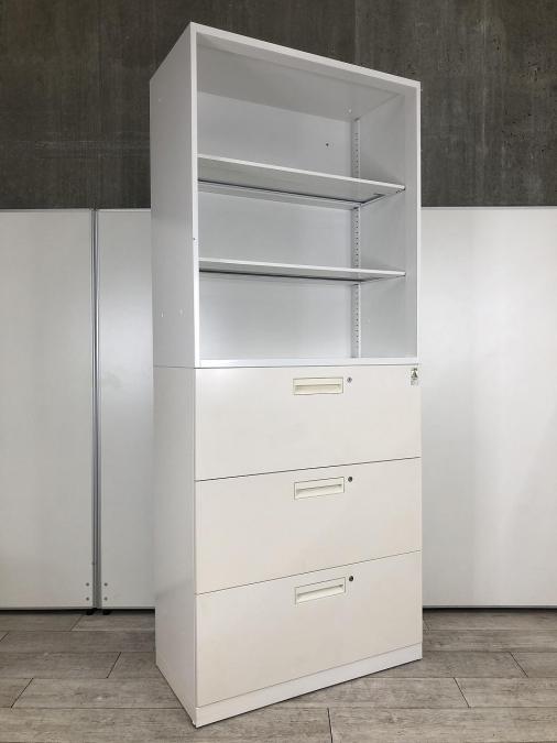 上段オープン+下段3段引き出しタイプの上下書庫セット!使い勝手・収納量抜群の人気仕様! ■コクヨ/エディア/ホワイト- 立川・八王子店
