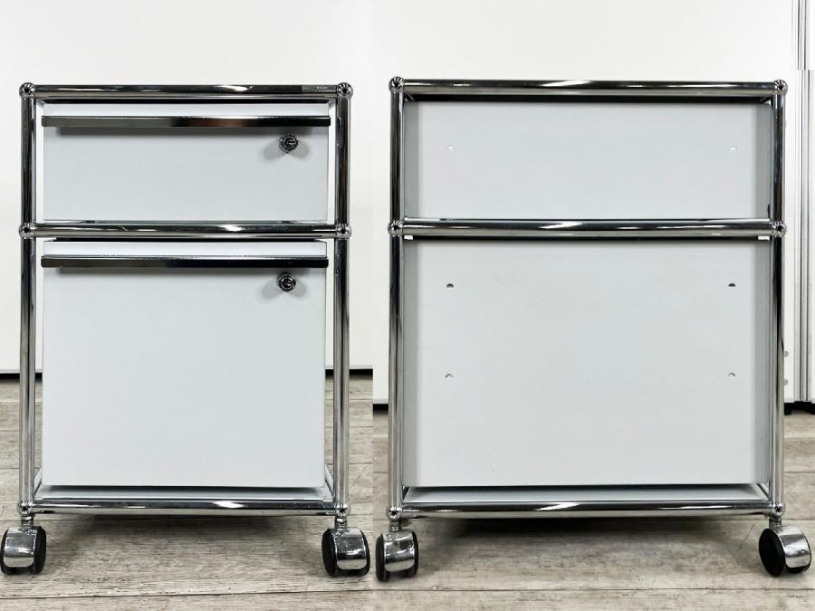システムキャビネットメーカー『USMハラー』のデスクインワゴンです。 デスクワゴンとしてはもちろん、ベッドサイドのナイトテーブルやキッチン周りの収納キャビネットとしてもお使いいただけます。